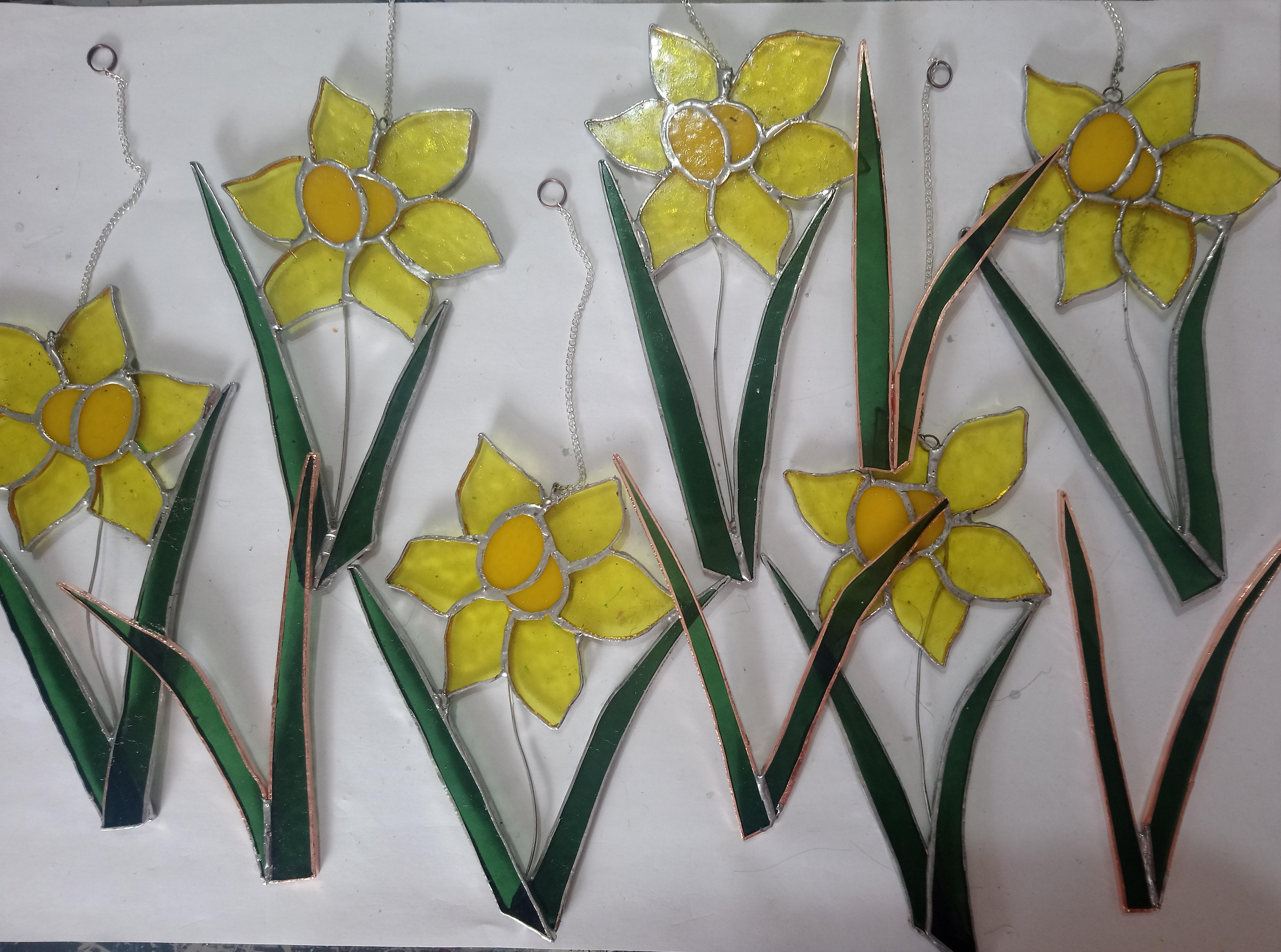 Yes, I’ve been really proactive with my stained glass, making batches of glass hens, blue tits, daffodils, easter eggs and a couple of dragons…. OK, I haven’t finished the dragons but they’re cut and ready for the next phase. Here’s one I made earlier…